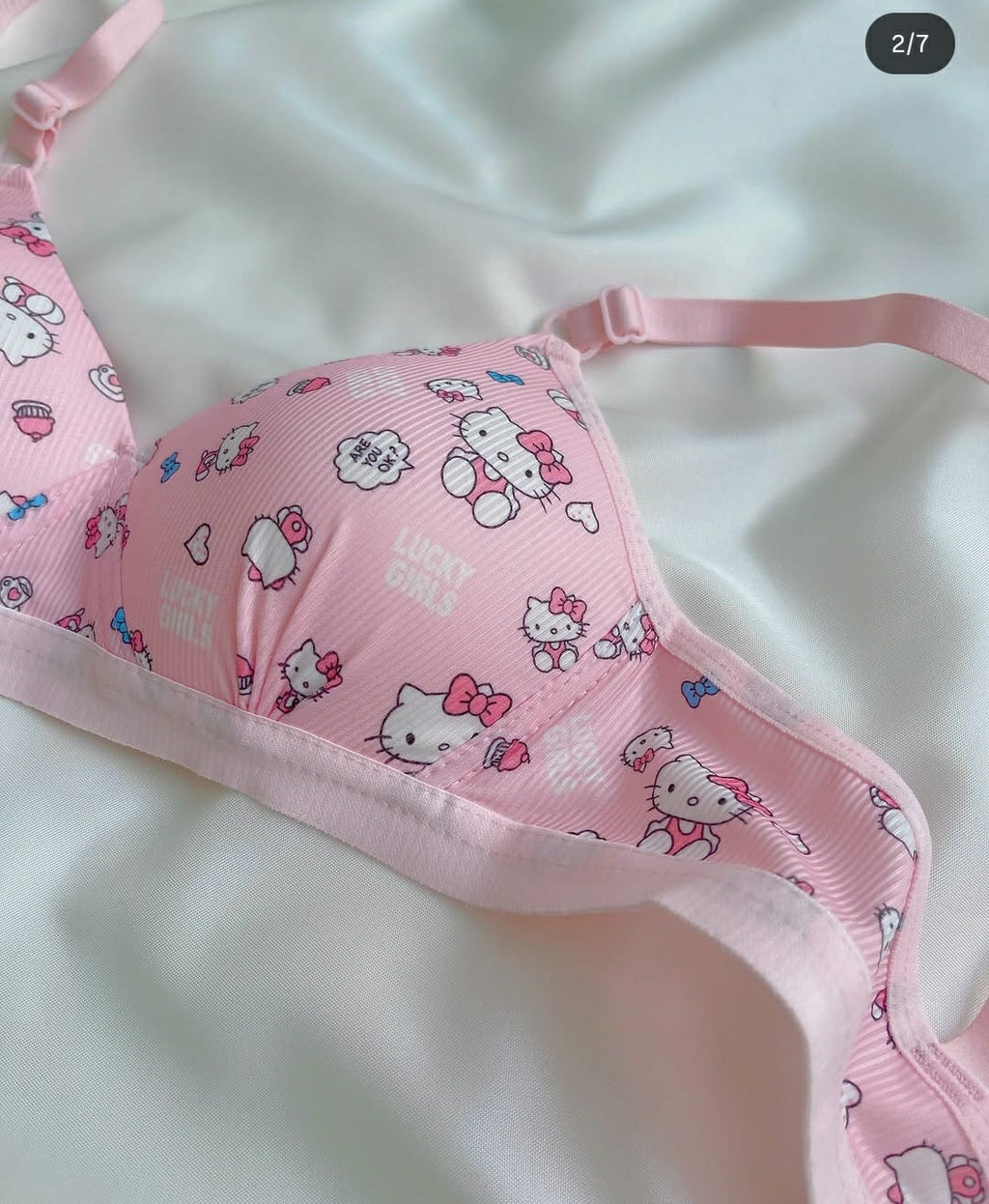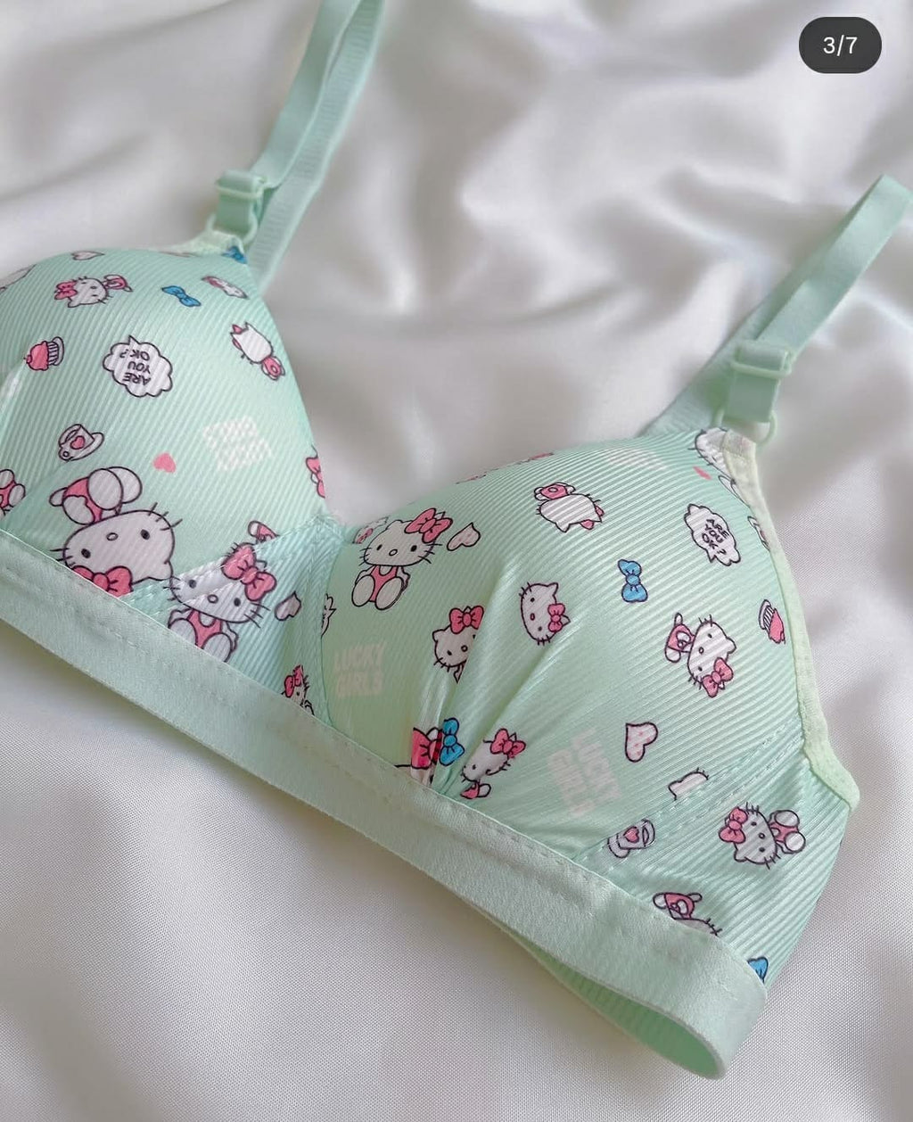 Brighten your lingerie drawer with this adorable pastel bra, featuring Hello Kitty–style prints that are perfect for everyday comfort and style!